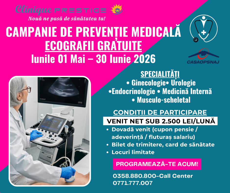 ECOGRAFII GRATUITE lunile 01 Mai – 30 Iunie 2026